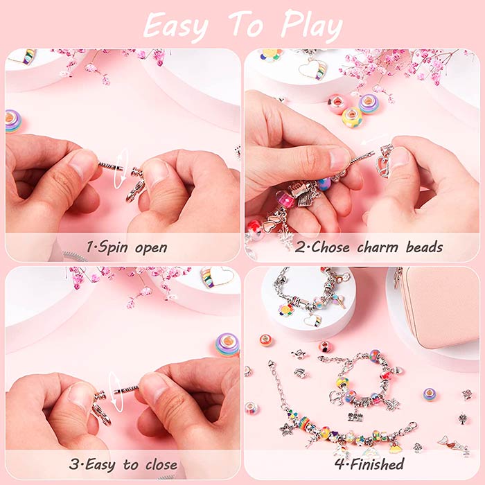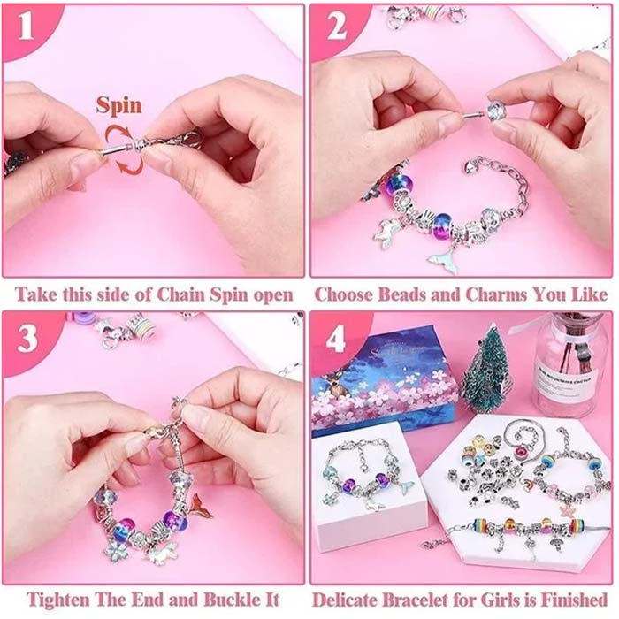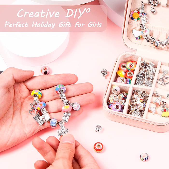 Dizajnirajte narukvice po vašoj želji i ukusu. U kompletu dobijete čak 60 raznobojnih perlica i privjesaka koje možete staviti na narukvice!