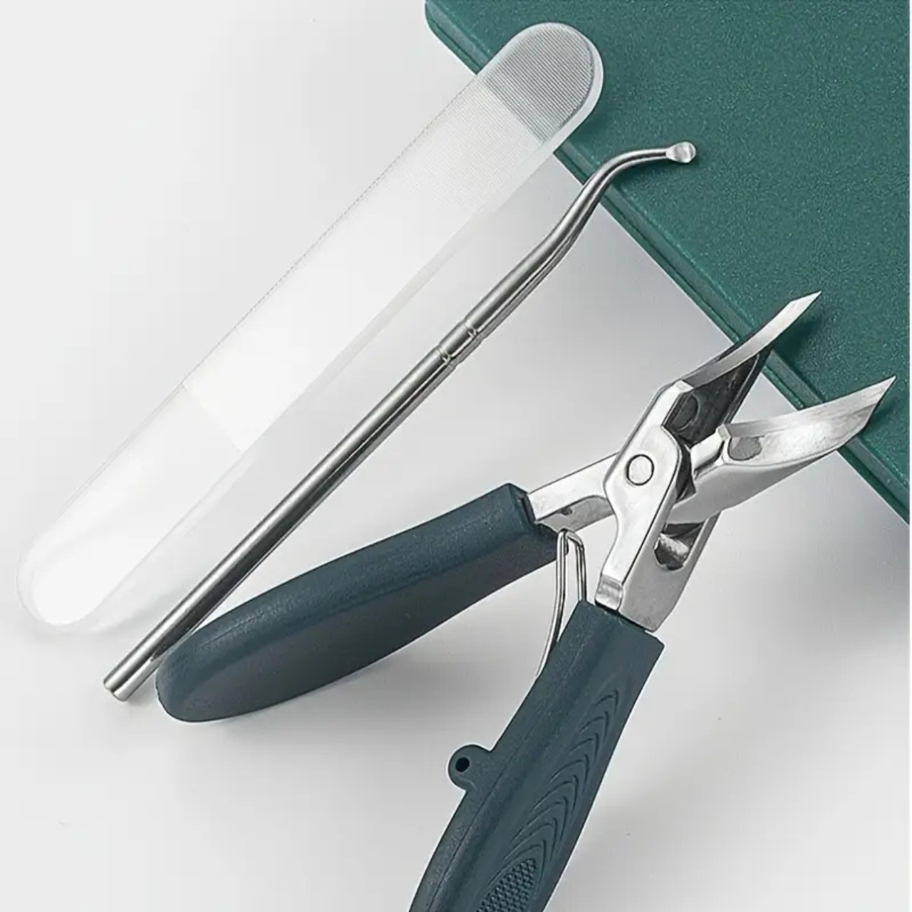 Profesionalni set za rezanje noktiju uključuje turpiju za nokte, alat za čišćenje noktiju i kliješta s jedinstvenim dizajnom orlovog kljuna za brzu, preciznu i sigurnu njegu noktiju – čak i za teške oblike noktiju i urasle nokte!