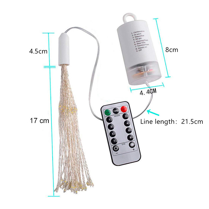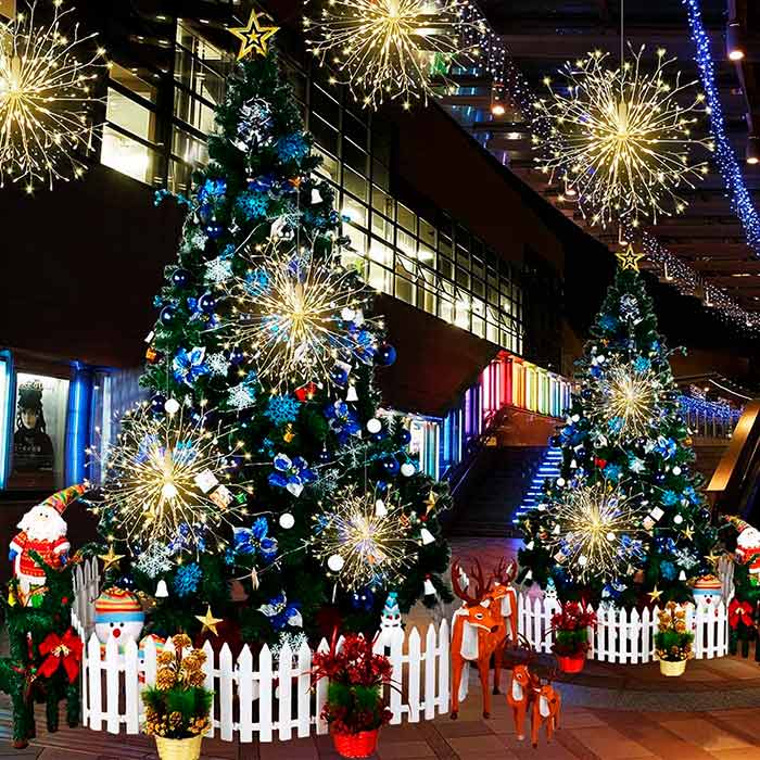Božićne svjetlosti imaju prekrasan vatromet efekt. Dekoracija za Novu godinu sadrži 60 žica s 120 LED svjetala, koje možete savijati koliko god želite. Novogodišnje svjetlosti su prikladne za vanjsku dekoraciju (balkon, terasa, biljke u vašem vrtu itd.) i za unutarnju dekoraciju (božićno drvce, ukrasi koji vise sa stropa itd.)!