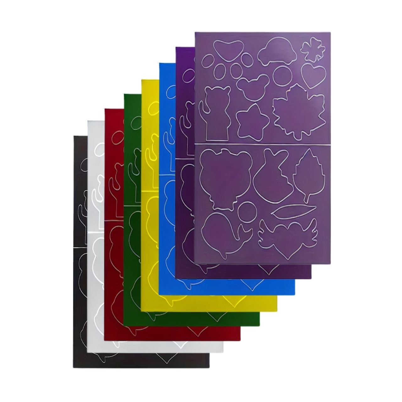 Crna, bijela, crvena, tamno zelena, plava, žuta, ljubičasta i lila
